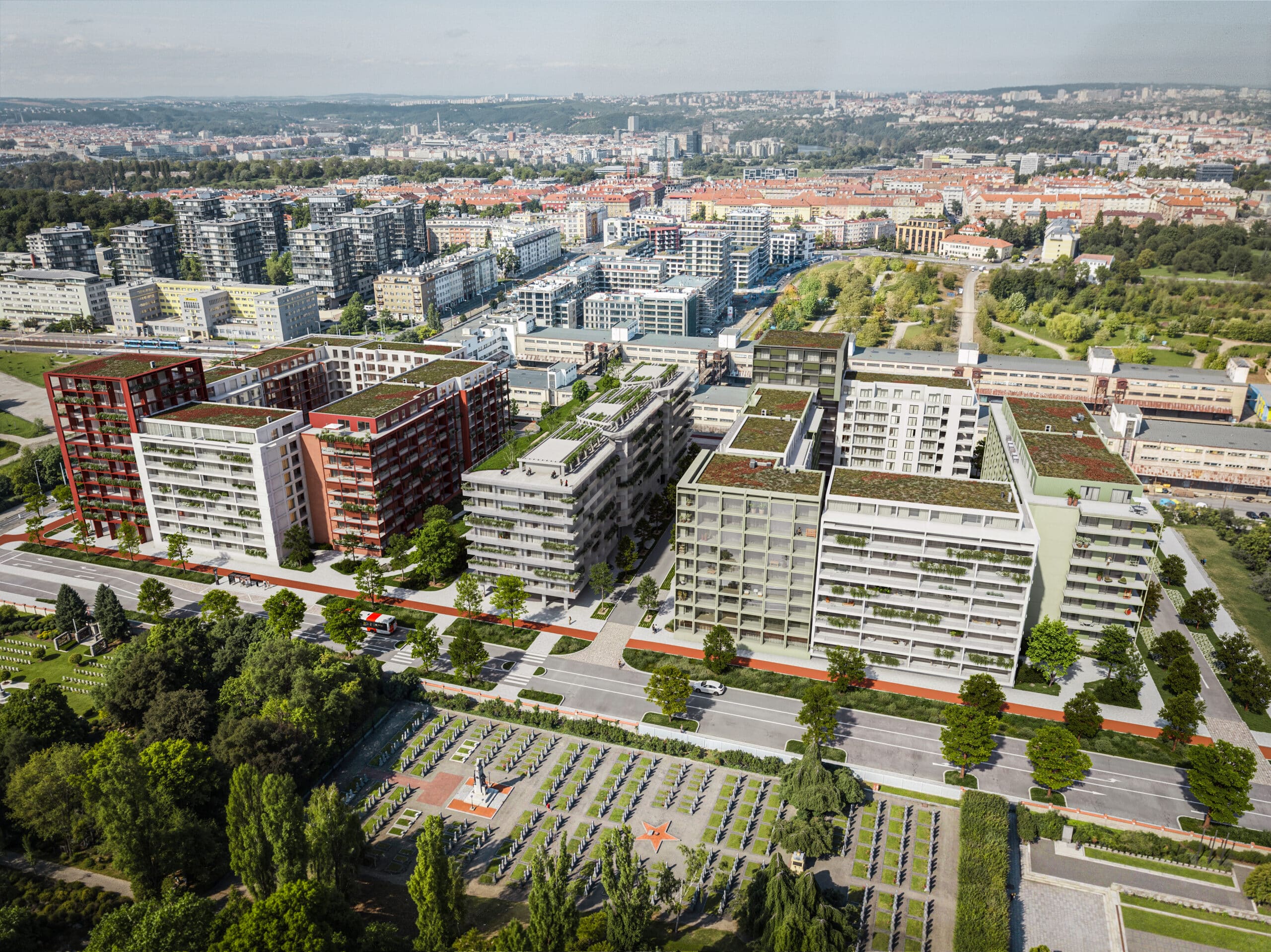 Soutěžní návrh pro území bývalého nákladového nádraží Žižkov pracuje s proměnou původně navržených dvou velkých bloků v jemnější urbanistickou strukturu. Navrhli jsme dva menší uzavřené bloky a jeden solitérní objekt – habitat.